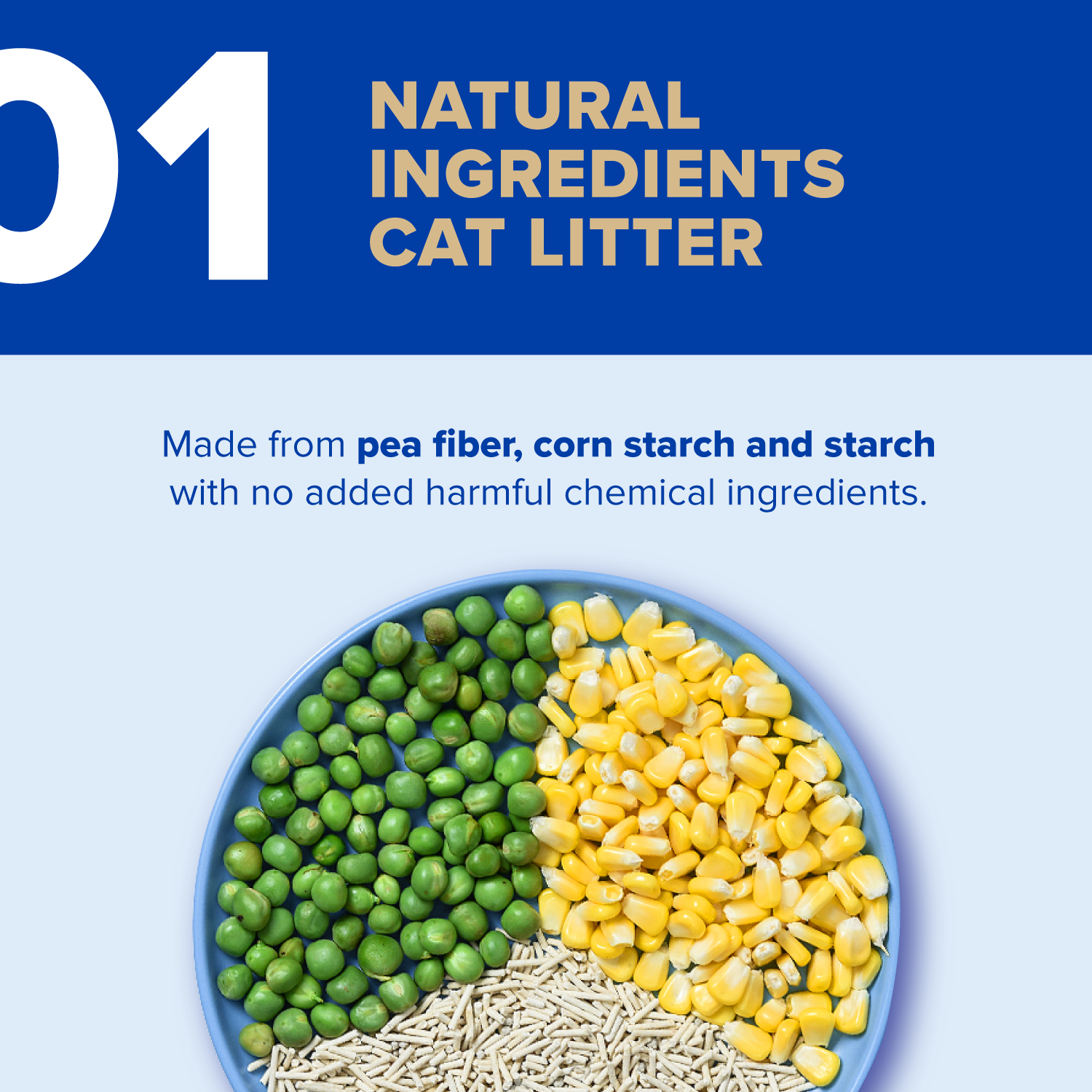Tofu cat litter is made from pea fiber, corn starch and starch with no added harmful chemical ingredients. This 100% plant-based and biodegradable product delivers highly effective performance which keeps both you and your purr babies happy and healthy.