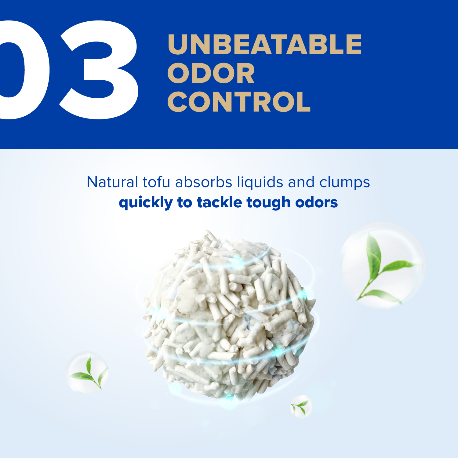Natural tofu absorbs liquids and clumps quickly to tackle tough odors