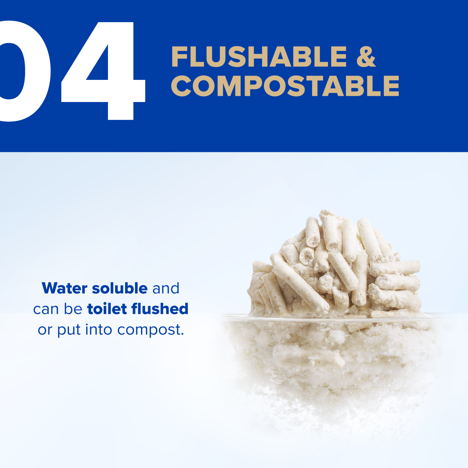 Made from pea fibre and corn starch, this super-absorbent formula produces harder clumps than others, making clean-up simple and mess-free. This 99% dust-free litter gives so you and your cat happy nose, no dusty cloud throughout your house. Clean up is easy and quick with this environmentally friendly’s formula, the plant based ingredients is biodegradable, flushable, natural & safe.