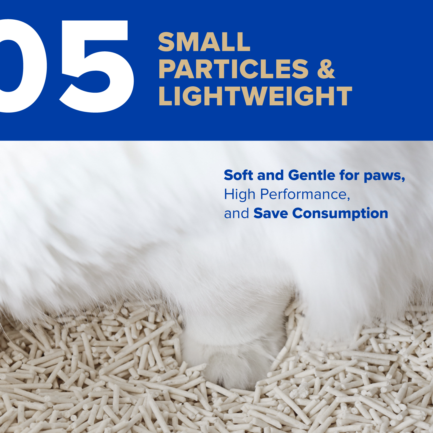 Smaller particles, soft and gentle for paws, high performance, and save consumption.